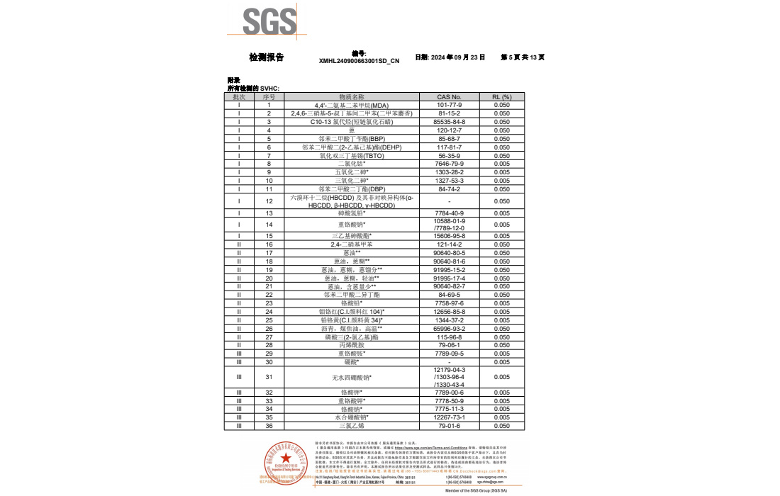 明苯的RoHS和FDA报告